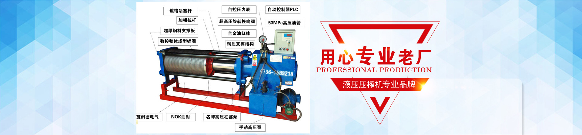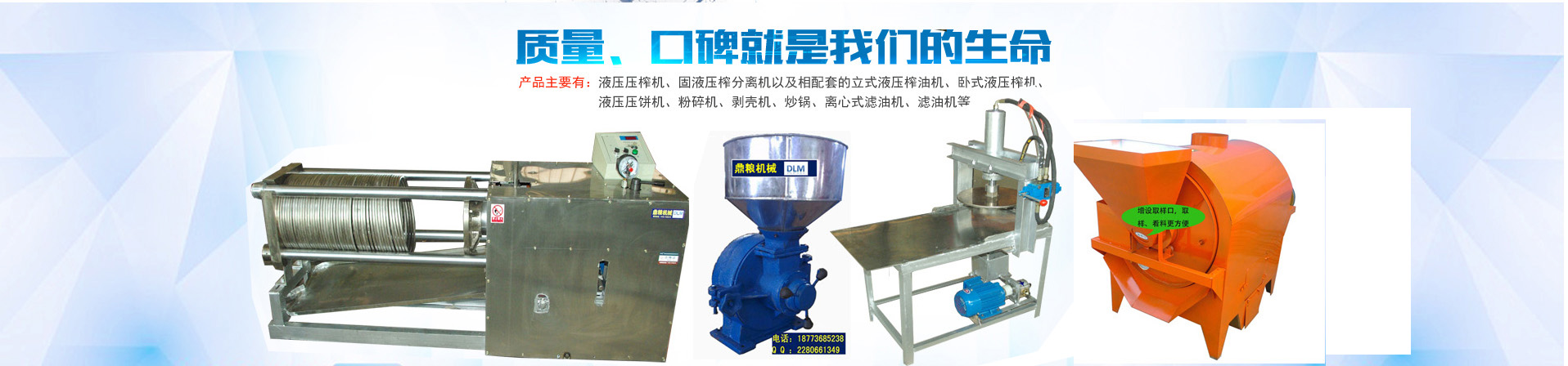 產(chǎn)品主要有:液壓壓榨機、固液壓榨分離機,以及相配套的立式液壓榨油機、臥式液壓榨油機、液壓壓餅機、名類粉碎機、剝殼機、帶灶滾筒炒鍋、榨油輔助設(shè)備、各種類型濾油機、液壓泵站、壓力機整機及其配件等。